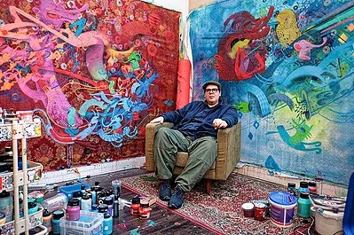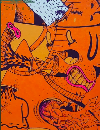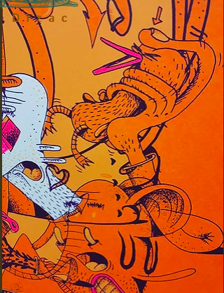 Alexandre Dizac, dit Alëxone Dizac, est un artiste français qui vit et travaille entre Paris, Ivry et le reste du monde. Depuis le début des années 1990, il développe un univers fantastique et coloré où le dessin et la peinture tiennent une place centrale. Difficile de ne pas parler de graffiti lorsqu’on évoque le travail d’Alëxone Dizac.Indéniablement, la discipline a eu l’effet d’un catalyseur dans la construction de l’artiste, lui permettant d’éduquer son regard, d’améliorer sa technique et d’alimenter une curiosité insatiable pour une multitude de formes d’arts. Véritable levier, le graffiti a permis de faire évoluer sa peinture et d’élargir ses horizons en développant un intérêt prononcé pour la bande dessinée, les voyages, l’histoire de l’art et la typographie. Le milieu du graphisme, côtoyé au cours d’une parenthèse professionnelle, a également eu un impact sur l’esthétique de l’artiste. Les pinceaux ont progressivement remplacé les caps des bombes aérosols pour une pratique presque exclusivement tournée vers l’atelier.