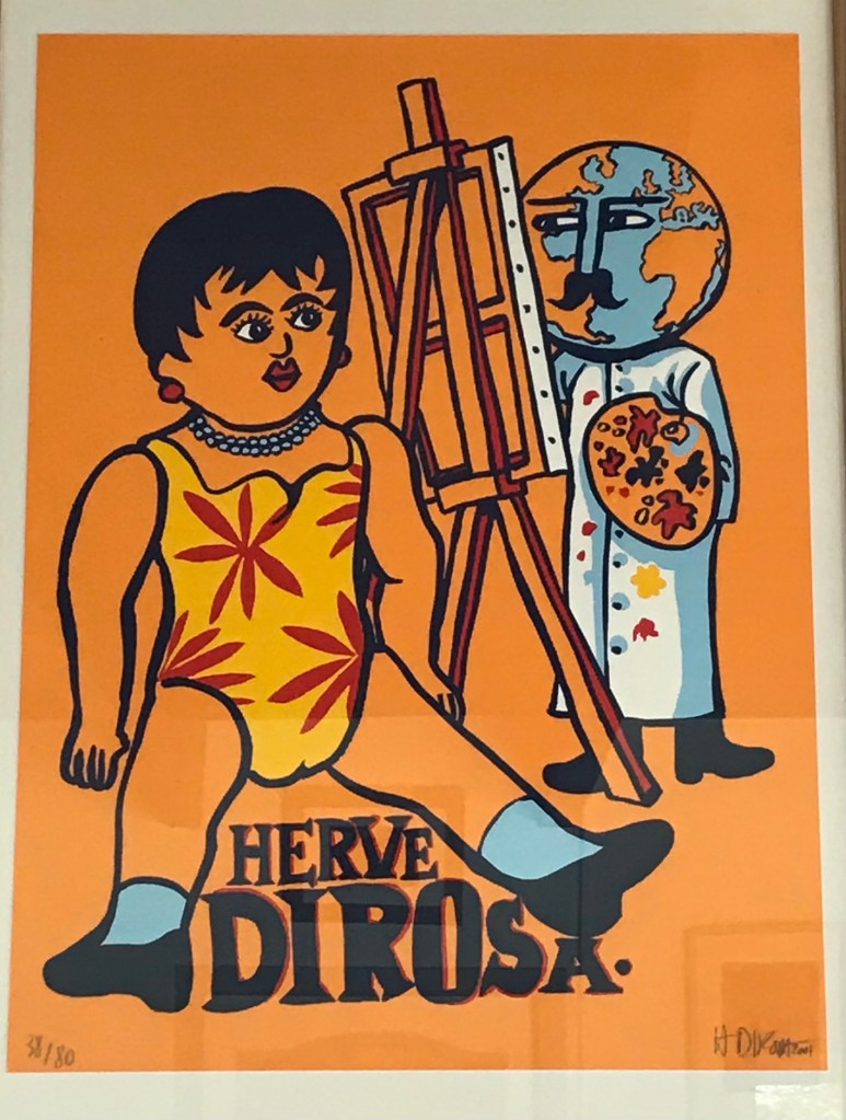 C’est en 1989 qu’Hervé di Rosa collabore pour la première fois avec des artisans locaux en réalisant deux sérigraphies dans un atelier d’impressions publicitaires de Tunis.