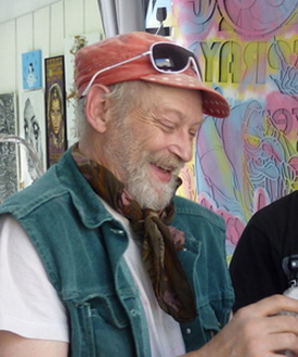 « L’œil pétillant, le regard narquois. Le pochoir fait partie de sa manière de « vivre autrement » : au Moyen Âge, il aurait été troubadour. Fou de BD et fou de la rue, le pochoir a permis la rencontre de ses deux folies, pour son plus grand plaisir… Il œuvre avec sa complice la Cigne. »4