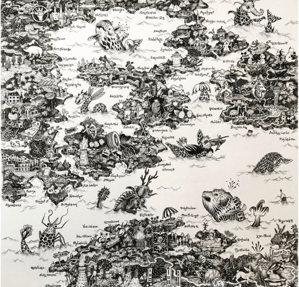 Elle développe depuis 2018 la série Utopia en dessinant au Posca sur des sphères en bois. Ces cartographies imaginaires sont présentées chez Art22 Gallery à Bruxelles et chez Azart Gallery à New York, San Francisco ou encore Miami et à Paris à la Galerie Artima.