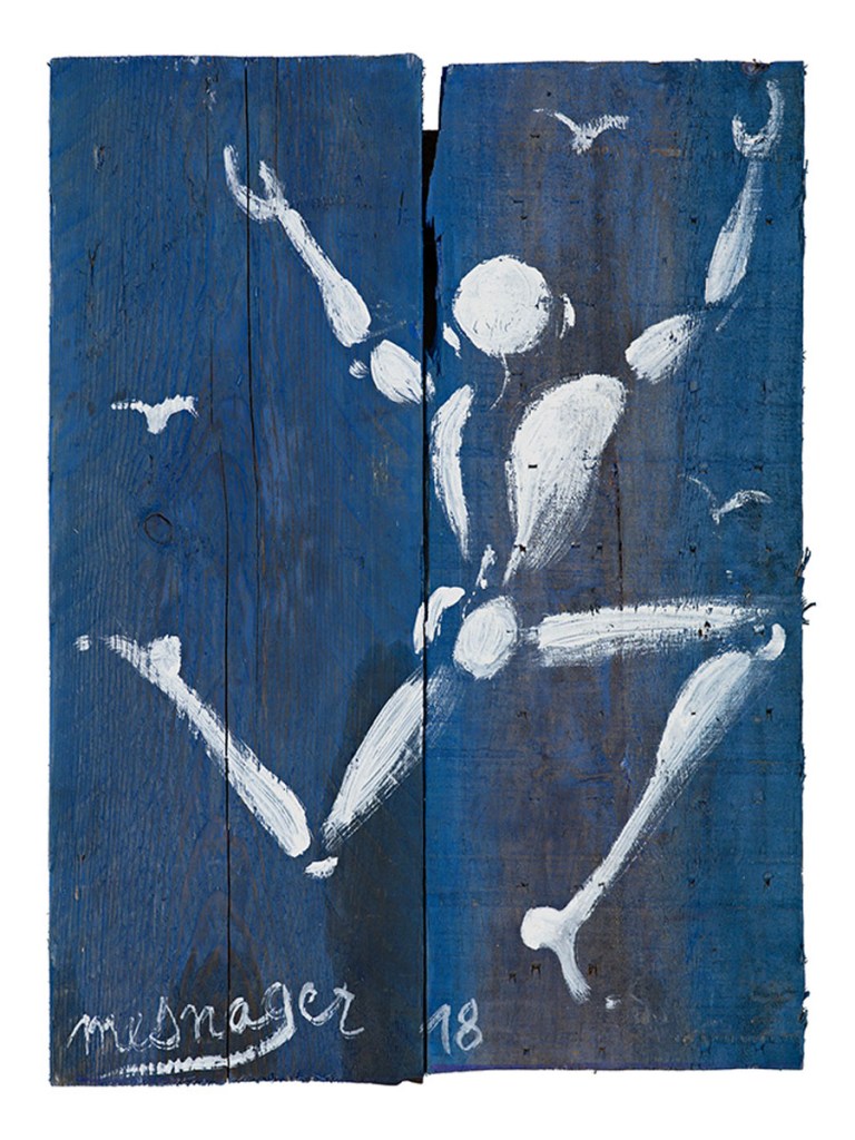 Jérôme Mesnager entre à l’école Boulle en 1974 où il suit une formation d’ébéniste et où il enseignera par la suite. En 1979, il suit les cours de bande dessinée d’Yves Got et de Georges Pichard, professeurs à l’École supérieure des arts appliqués Duperré.Il est l’un des fondateurs, en 1982, de Zig-Zag, un groupe d’une dizaine de très jeunes artistes qui décident d’occuper la rue en dessinant des graffitis et, aussi, d’occuper brièvement, le temps d’une performance artistique, des usines désaffectées.Le 16 janvier 1983, il invente l’Homme en blanc, « un symbole de lumière, de force et de paix ». Cette silhouette blanche Jérôme Mesnager l’a reproduite à travers le monde entier, des murs de Paris à la muraille de Chine.En 1990, Jérôme Mesnager quitte la maison de son enfance, lieu de ses rencontres avec Jean-Pierre Le Boul’ch, siège de ses associations, atelier de ses premiers travaux, pour emménager dans le XXème arrondissement de Paris. Il exposera une série de palissades sur le thème des combats à la galerie Loft, qui édite un catalogue. – Sources : site de l’artiste https://jeromemesnager.com/