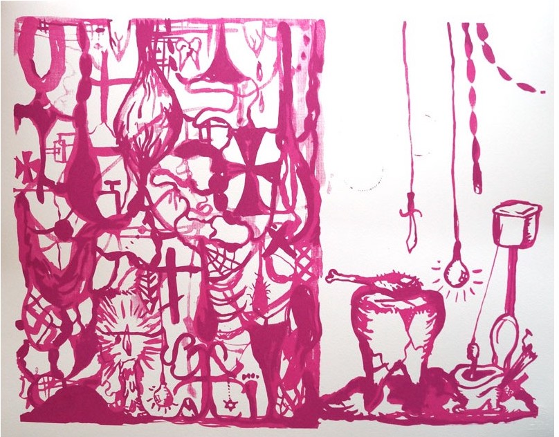 Chaque année les amis du MIAM (Musée International des Arts Modestes) offre une sérigraphie originale à ces adhérents. Pour l’année 2012 c’est Manuel OCAMPO qui est choisit pour réaliser l’oeuvre.