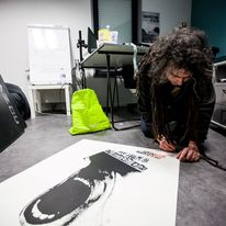 Graphiste et sérigraphe, Dominique Perrin alias ZAZ OU dirige les ADLC (ateliers de la citoyenneté à Calais)
